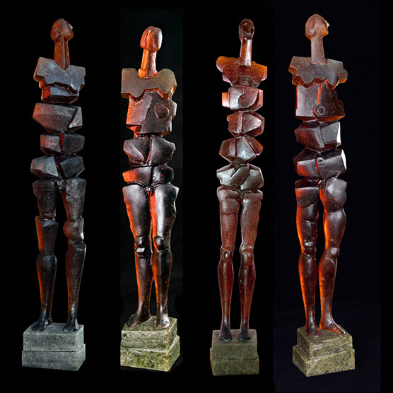 1) “Standing woman with Heart” 2006 , 06 , 39” x 6” x 5.5” , Kiln cast glass.
