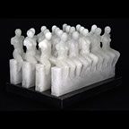 Untitled / Five waiting figures , 05 , 26” x 20.5” x 5” , Cast glass, marble