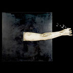 "Holding" l , 09 , 26 x 41 x 4.5 , Kiln Cast glass, welded steel