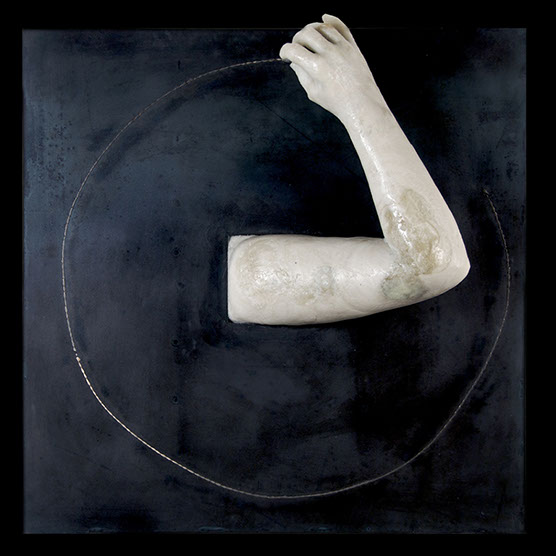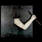 "Holding" ll , 09 , 39 x 26 x 7 , Cast glass, welded steel