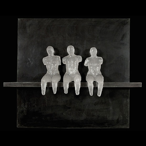 Untitled (Waiting figures, 3CL/SQ) , 04 , 24.5” x 29” x 6” , Cast glass, steel.