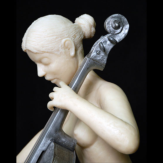 “Woman with Cello” (Var. 1 of 3) , 06 , 31” x 24” x 24” , Cast glass, cast aluminum, steel. (detail)