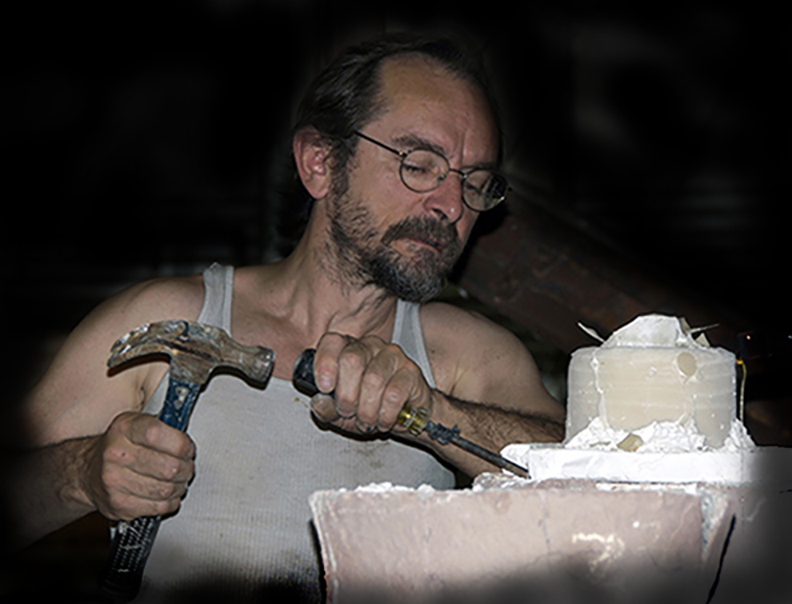 In the years from 1987 to 1994, He worked with artist Nicholas Africano, casting Africano’s early glass figures, and debuted himself in 1998 at Anne O’Brien Gallery in Washington, DC , with his own cast figurative work, and later again on 1991,with a show at Franklin Parrish gallery in NYC, showing, what was then considered large scale, 3D figurative work in cast glass.