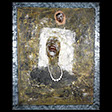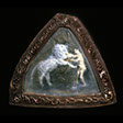 "White Lion" , 89 , 12” x 14” , Kiln cast glass , wood , oil paint