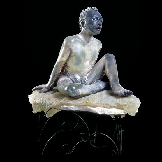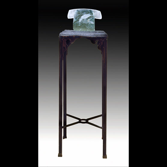 “Still Waiting” , 89 , 13” x 17,5” x 17,5” , Kiln cast glass, Cast iron base