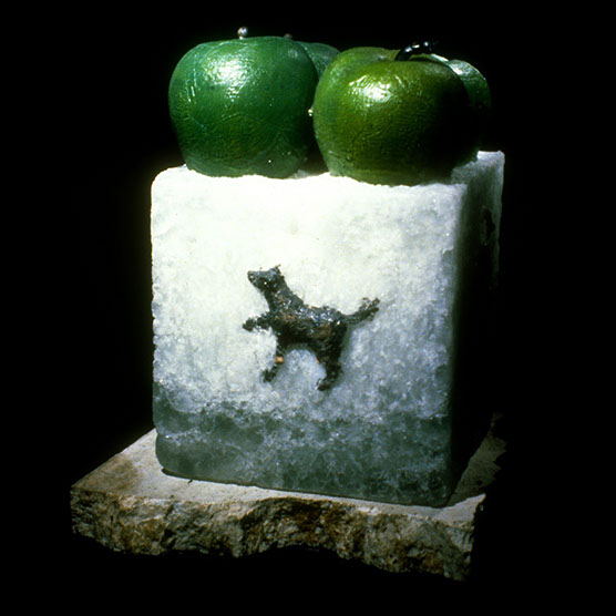 Untitled with four apples , 89 , 13” x 10” x 17" , Blown,Cast,painted glass