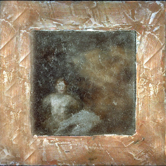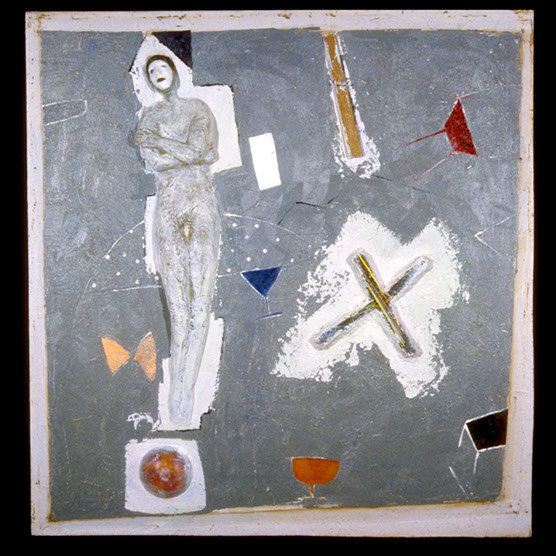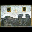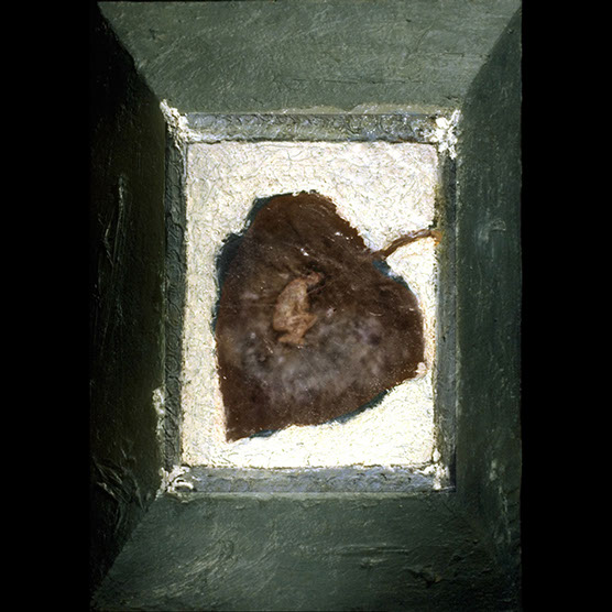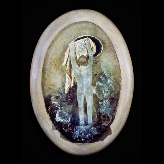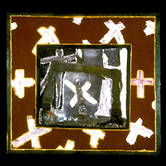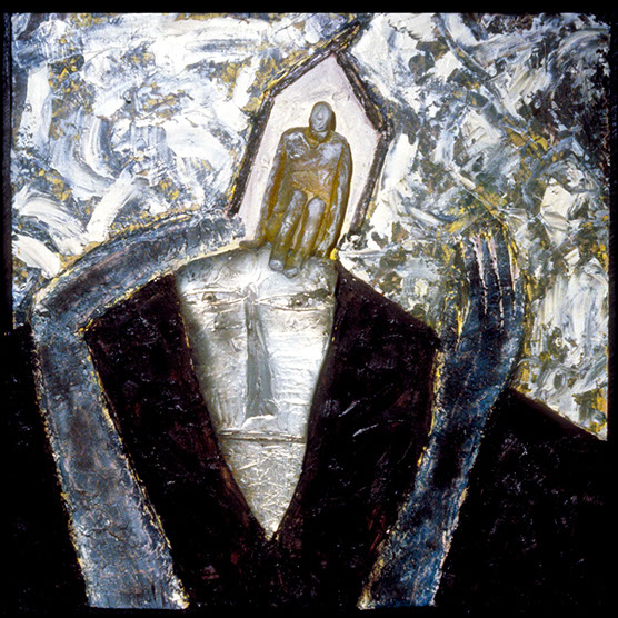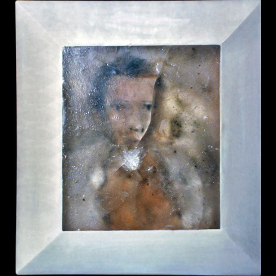 "His Battle" , 89 , 12” x 14": , Kiln cast glass , wood , oil paint