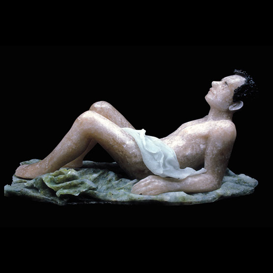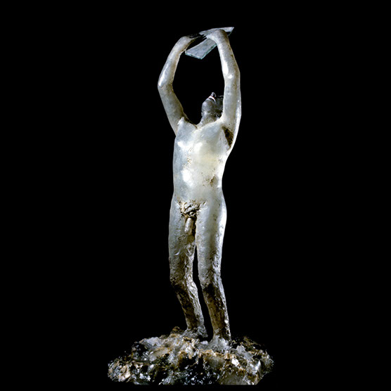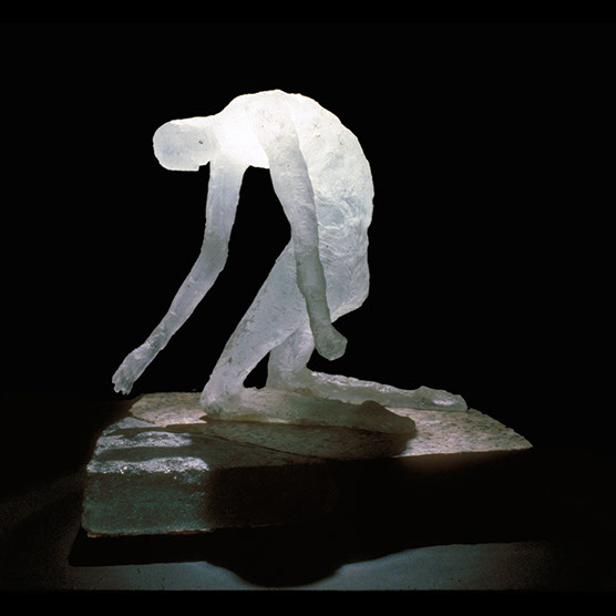 “Male Reaching” , 89 , 14” x 15” x 14" , Kiln cast glass , Marble.