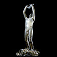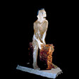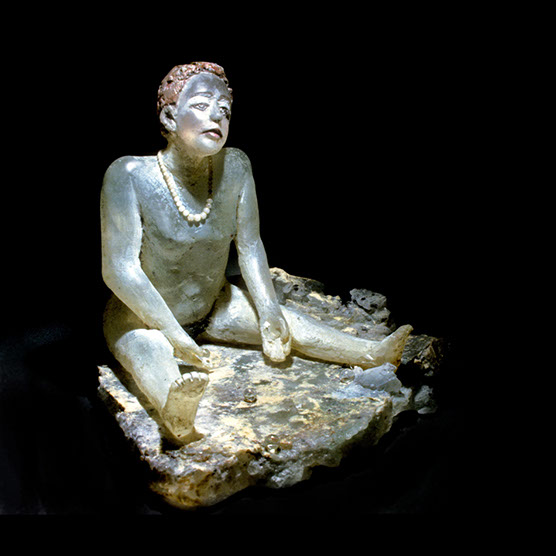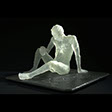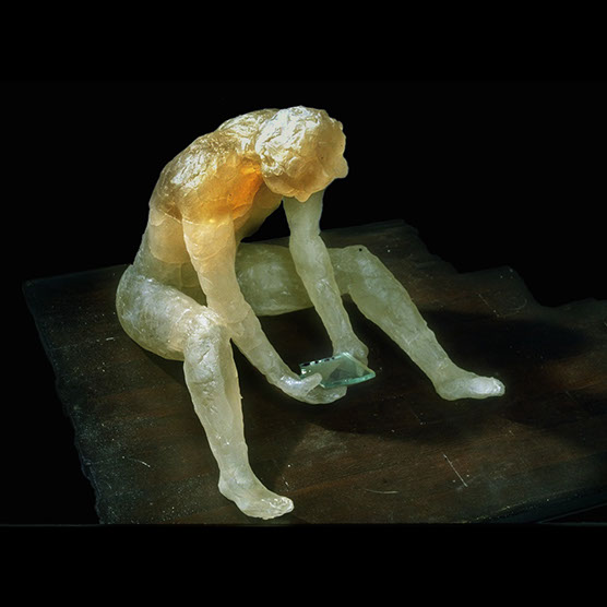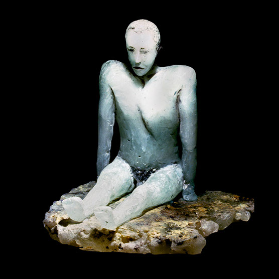 “Waiting Male” , 89 , 13X14X12" , Kiln cast glass , Marble, electroplated dessert rose.