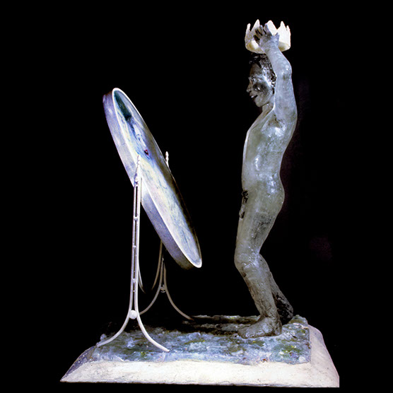 My Image (Detail) , 90 , 35” x 22” x 27” , Kiln cast glass, steel, oil paint