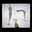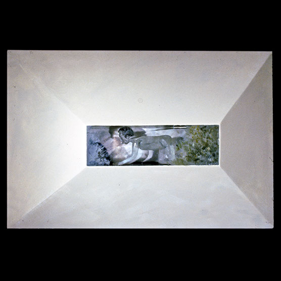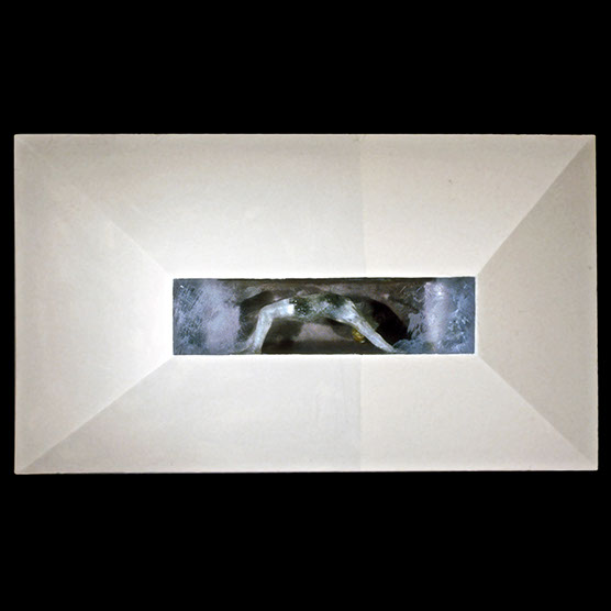 “Cover” , 92 , 33” x 29” , Kiln cast glass, wood, oil paint, enamel paint