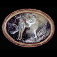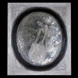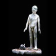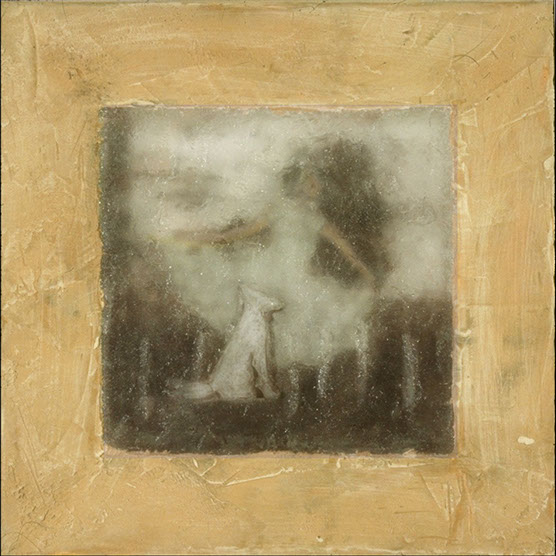 Girl And Dog , 88 , 10.5” x 10.5” , Cast glass, oil paint, in wood frame