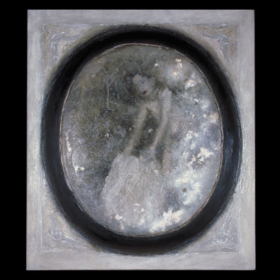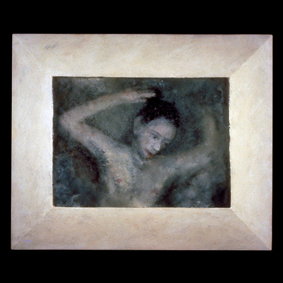 “Waiting” , 87 , 23.5” x 22.5” , Kiln cast glass, oil paint on wood