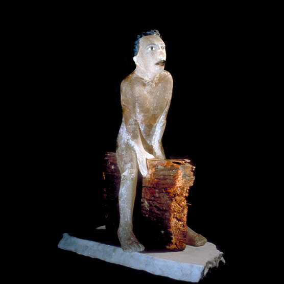 “Searching Young Man” , 89 , 13” x 20” x 14" , Kiln cast glass , Marble.