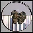 (Father And Son) “Double Portrait” , 92 , 25” x 20” , Kiln cast glass, wood, oil paint, enamel paint