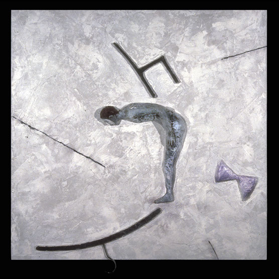 “The Balance” , 87 , 32” x 33.5” , Kiln cast glass, oil paint on wood